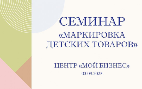 В целях повышения информированности и готовности к введению обязательной маркировки детских товаров 3 сентября 2025 г. с 10:00 до 12:00 часов (время местное) в малом зале центра «Мой бизнес» (г. Новосибирск, ул. Сибревкома, 9В) состоится обучающий семинар по вопросу маркировки отдельных видов товаров для детей. Кроме того, предусмотрена возможность участия в семинаре дистанционно, будет организована онлайн-трансляция, доступная по ссылке clck.ru/3NsLU8.