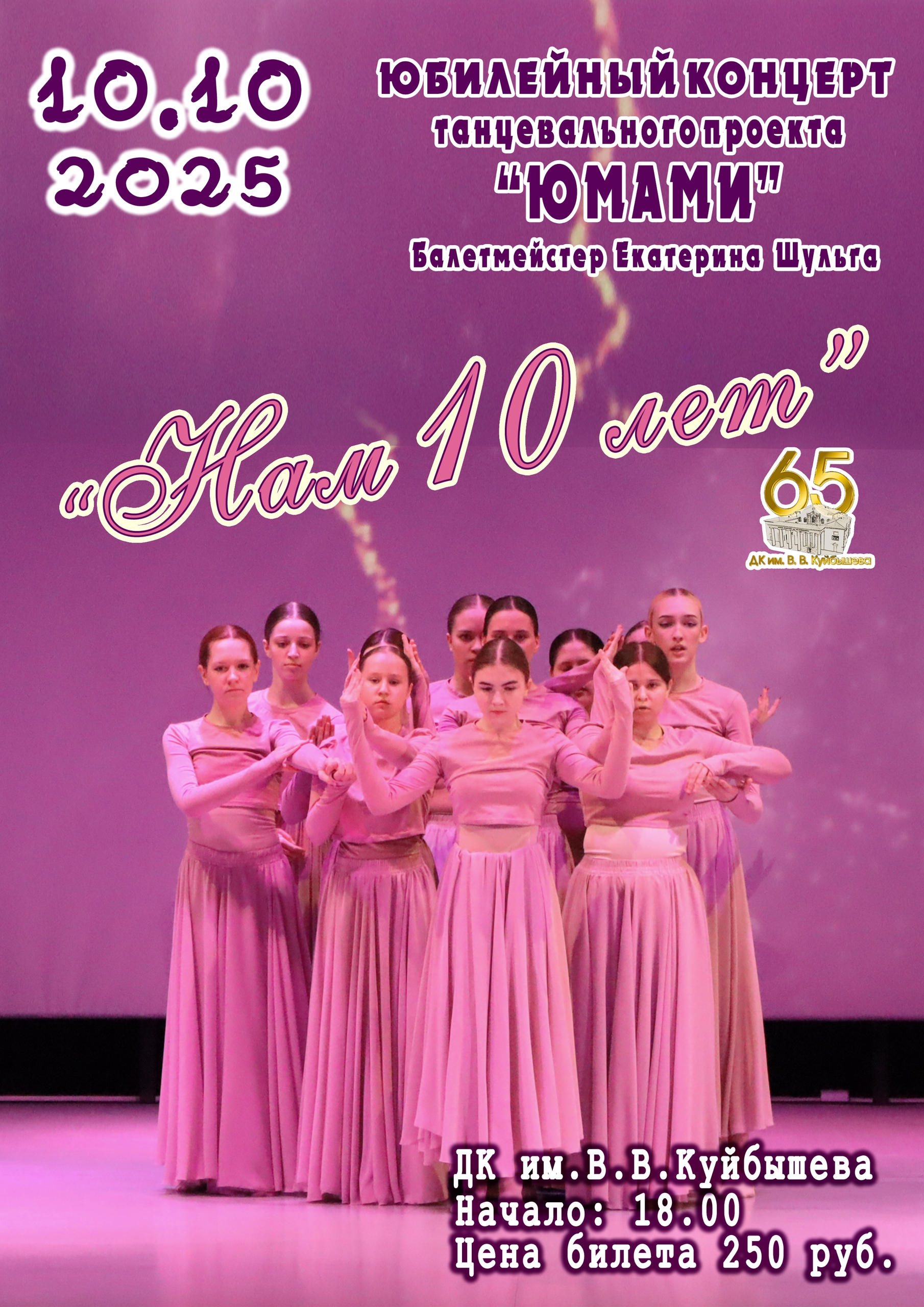 Приглашаем гостей и жителей города Куйбышева на Юбилейный концерт танцевального проекта «ЮМАМИ» (балетмейстер Екатерина Шульга) - это радостное событие в дружной хореографической семье и праздник таланта, кропотливого труда и радости творчества!