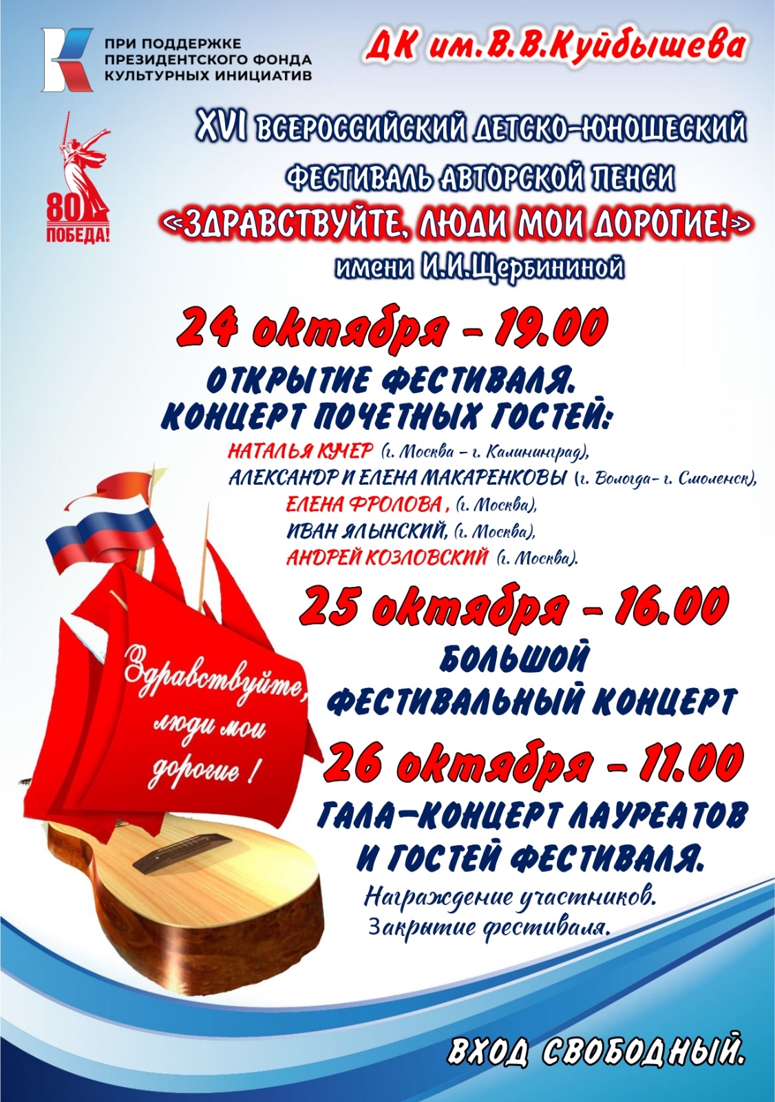 С 24 по 26 октября в ДК им.В.В.Куйбышева состоится XVI-й Всероссийский детско- юношеский фестиваль авторской песни
